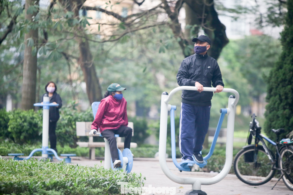 Tại hồ Trúc Bạch khu vực phường Quán Thánh, rất đông người dân tham gia luyện tập thể dục bất chấp chỉ thị cách ly toàn xã hội của Thủ tướng Chính phủ.