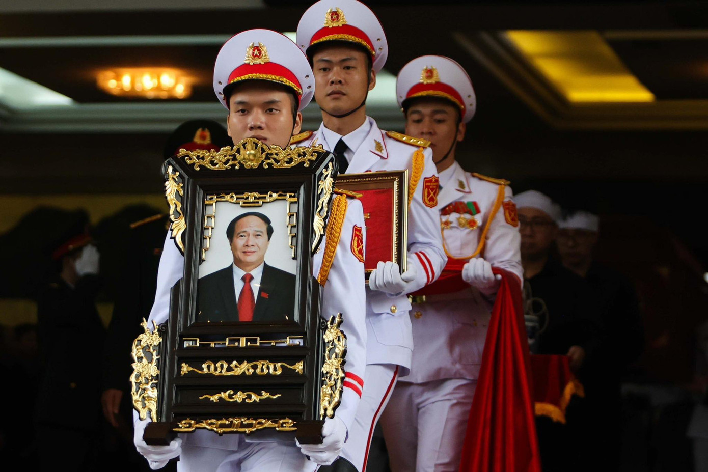 Thủ tướng Chính phủ Phạm Minh Chính, nguyên Chủ tịch nước Nguyễn Xuân Phúc cùng các lãnh đạo, nguyên lãnh đạo Đảng, Nhà nước và thành phố Hải Phòng, cùng gia quyến tiễn biệt Phó Thủ tướng Lê Văn Thành.
