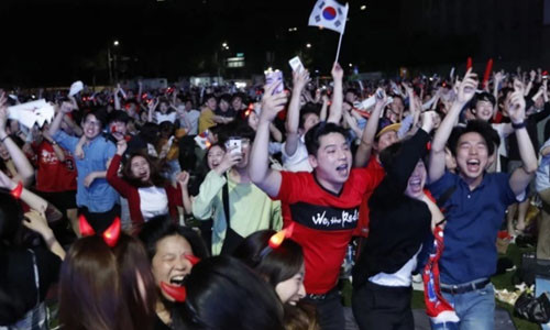 Cổ động viên Hàn Quốc hò reo ăn mừng sau chiến thắng của đội nhà hôm 27/6. (Ảnh: AFP)