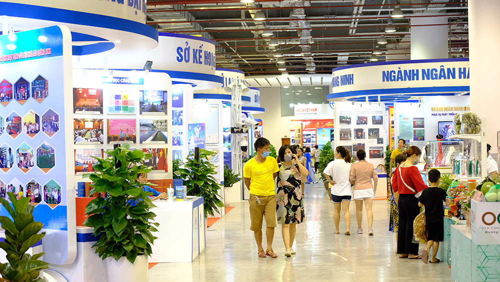 Thành tựu đó được cụ thể hóa bằng những hình ảnh, hiện vật tiêu biểu của các sở, ban, ngành, đoàn thể, các địa phương và đại diện các tập đoàn kinh tế.