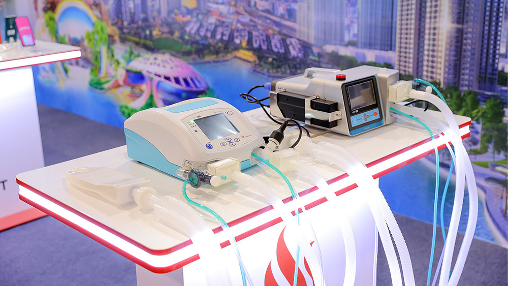 Ngoài thành tựu của các sở, ban ngành, sản phẩm nổi bật của nhân dân Quảng Ninh, nhiều thiết bị sản phẩm đặc biệt cũng được các tập đoàn kinh tế giới thiệu. Trong ảnh: máy thở do Vingroup sản xuất. Đây là một trong những thiết bị hỗ trợ Chính phủ, Bộ Y tế và nhiều địa phương trong công cuộc phòng chống COVID-19 hiệu quả thời gian qua.
