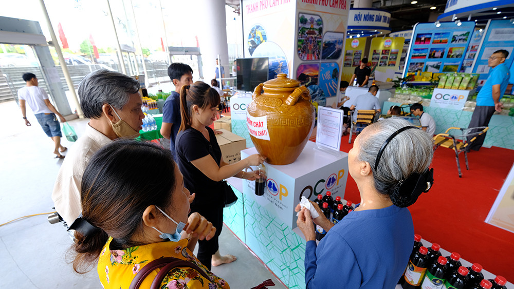 Bên cạnh đó, văn hóa, xã hội được quan tâm, đời sống nhân dân được cải thiện rõ rệt. Trong ảnh, người dân và du khách tham quan, thưởng thức các sản phẩm nổi bật của tỉnh Quảng Ninh được trưng bày tại triển lãm.