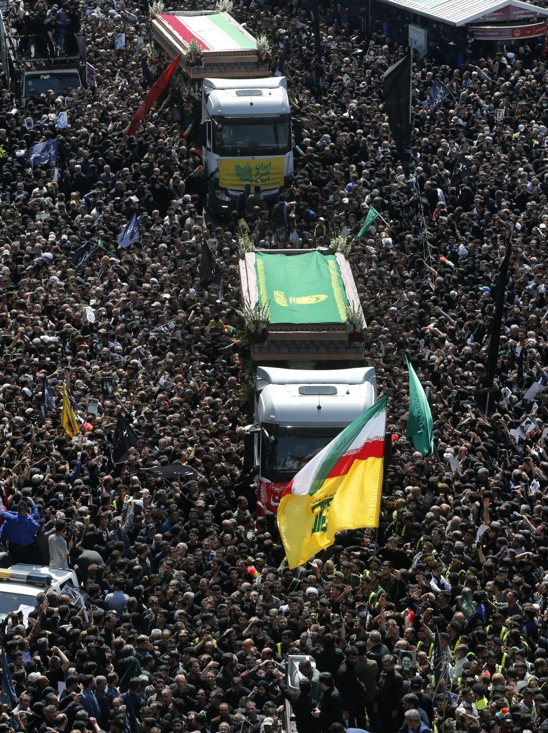 Hàng trăm nghìn người mặc đồ đen, cầm di ảnh cố Tổng thống Raisi và quốc kỳ Iran đã xuống đường để tiễn đưa các nạn nhân.
