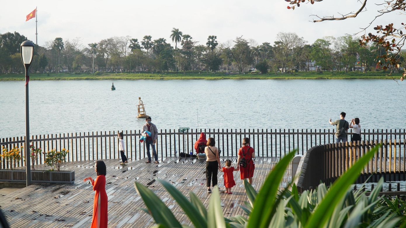 | Check in cầu gỗ lim chạy dọc sông Hương, đi bộ ngắm cảnh và chiêm ngưỡng muôn màu hoa Xuân tại công viên Lý Tự Trọng, chụp hình lưu niệm... đã trở thành sở thích của nhiều người, không phân biệt tuổi tác, giới tính, người giàu nghèo. |