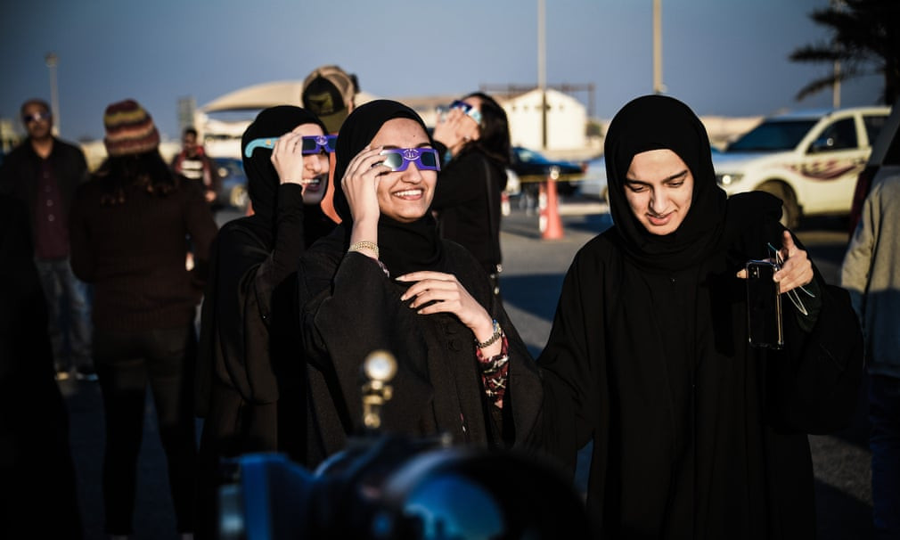Các cô gái Bahrain quan sát nhật thực. (Ảnh: EPA)