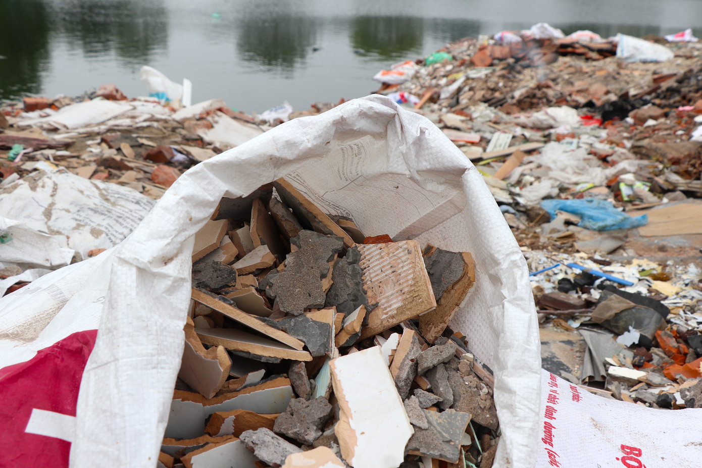 | Rác thải đổ tại đây là những vật dụng của gia đình không sử dụng như giường, chăn, nệm, rác thải sinh hoạt và đặc biệt phế liệu xây dựng. |