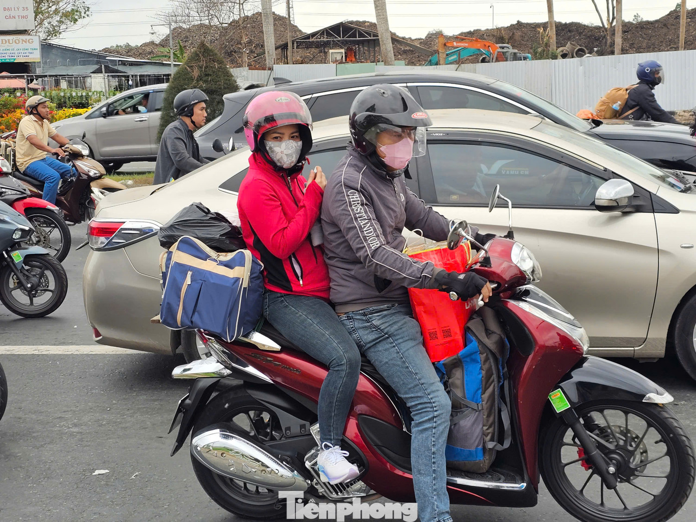 Trưa 26/1, ghi nhận của PV Tiền Phong, trên quốc lộ 1A, đoạn địa bàn TP. Cần Thơ, dòng người từ TPHCM chạy bằng xe gắn máy về hướng miền Tây, các tỉnh Hậu Giang, Sóc Trăng, Bạc Liêu, Cà Mau… nối tiếp nhau. Ảnh: Hòa Hội