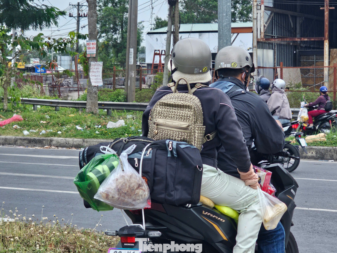 Người dân chở theo sau quà, trái cây về quê ăn Tết. Ảnh: Hòa Hội