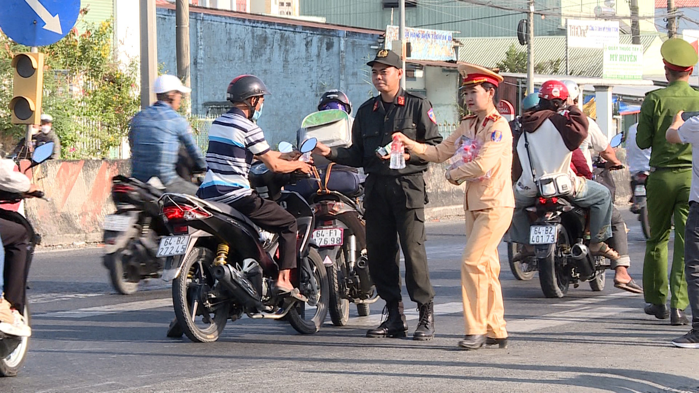| Tại Cần Thơ, Phòng CSGT Công an thành phố tổ chức phát nước suối, khăn lạnh, khẩu trang... tại 2 điểm trên quốc lộ 1 (trước Trạm CSGT Ba Láng, quận Cái Răng) và tại đường dẫn cầu Vàm Cống (huyện Vĩnh Thạnh). |