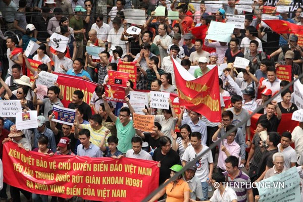 Sáng nay tại Hà Nội, hàng ngàn người đã xuống đường mít tinh, tuần hành để phản đối hành vi sai trái của Trung Quốc. Đoàn tuần hành đem theo khẩu hiệu, băng rôn, biểu ngữ như “Phản đối Trung Quốc đưa Giàn khoan Hải Dương - 981 vào vùng biển Việt Nam”, “Trung Quốc phải lập tức rút Giàn khoan Hải Dương - 981 về nước”.