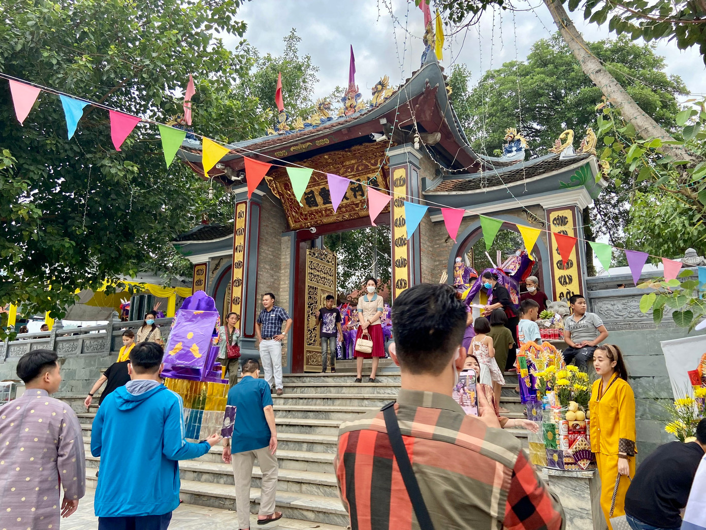 | Nhiều người dân đến dâng lễ dịp tháng 7 Âm lịch. |
