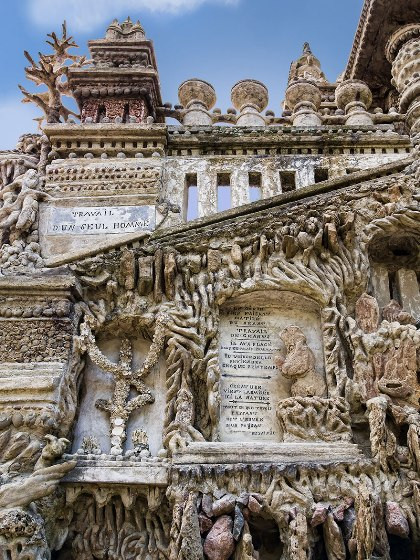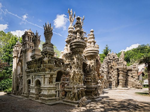 Palais Ideal là tòa lâu đài làm từ các loại sỏi đá với nhiều hình thù khác nhau mà ông Cheval nhặt nhạnh được trên đường đưa thư. Công trình này được xây từ năm 1879 và hoàn thành vào năm 1912. Ý tưởng xây dựng một tòa lâu đài này được hình thành sau một lần ông Cheval vấp phải đá trên đường đi làm. Từ đó, ông thường mang theo một chiếc xe cút kít trên chặng đường đưa thư dài chừng 28 km để thu lượm những hòn sỏi, hay đá có hình thù kỳ lạ.