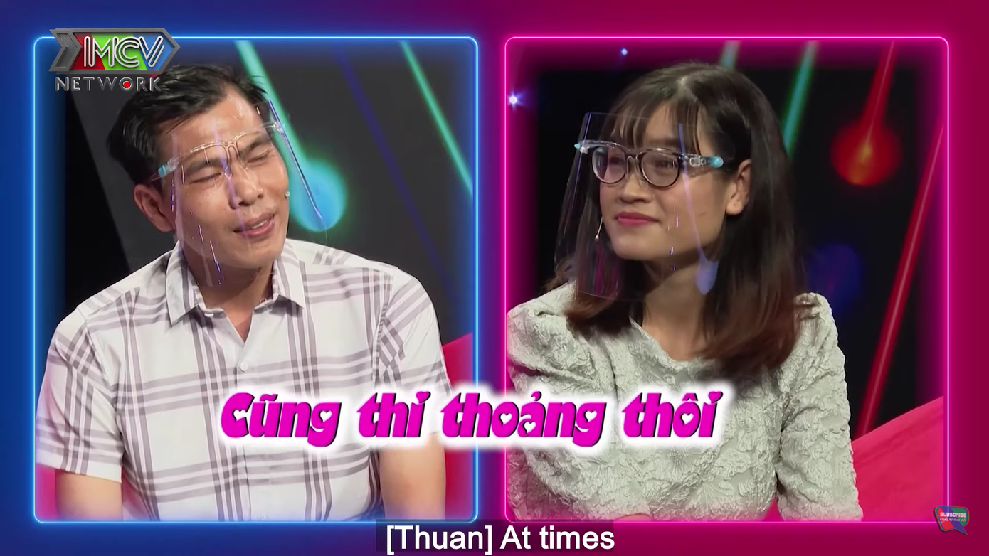 Anh Thuận giới thiệu mình là người hiền lành, sống hòa đồng và hay giúp đỡ người khác. Về khuyết điểm của bản thân, anh nhận mình hay quên, khá ít nói nên nhiều khi nhút nhát. Phía đàng gái, điểm mạnh của Trần Thị Vui là người chăm chỉ, ham học hỏi, biết lắng nghe và quan tâm đến người khác. Cũng giống như đối phương, Vui có tật xấu hay quên.