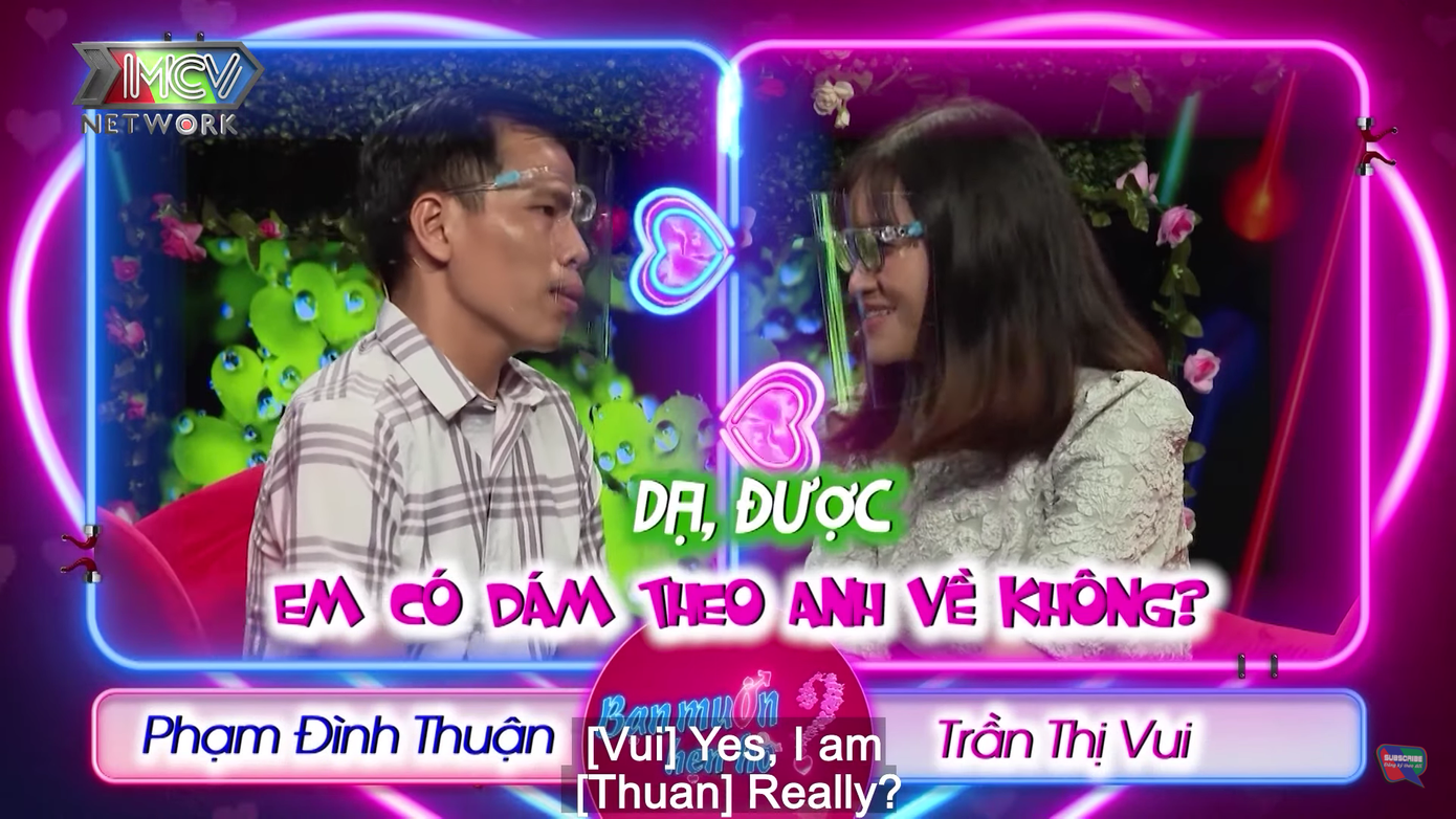 Đến với chương trình, Đình Thuận hy vọng tìm được người bạn đời biết đối nhân xử thế, biết sẻ chia trong cuộc sống, có ngoại hình cân đối. Với Trần Thị Vui, cô mong gặp một người hiền lành, dễ thương, biết quan tâm, chăm sóc mình.