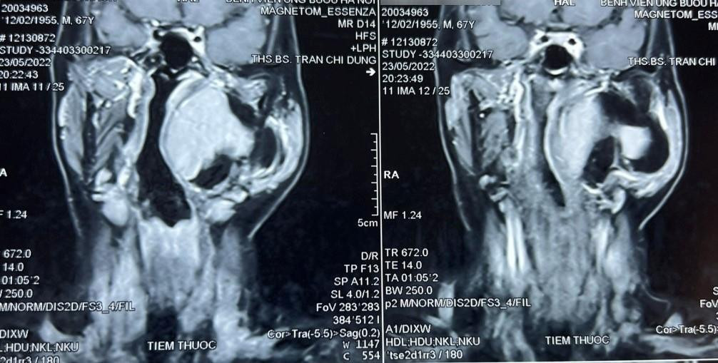 Quá trình phẫu thuật kéo dài hơn 2 giờ đồng hồ, với sự góp mặt của những bác sĩ giàu kinh nghiệm tại khoa Ngoại Đầu Cổ - Bệnh viện Ung Bướu Hà Nội, khối u đã được lấy trọn. Bệnh nhân hồi phục sau mổ tốt, không gặp biến chứng gì và xuất viện sau 5 ngày.