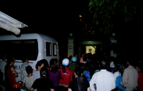 Hàng trăm người dân kéo đến theo dõi cảnh sát khám nghiệm hiện trường. Ảnh: Lê Hoàng/ VnExpress
