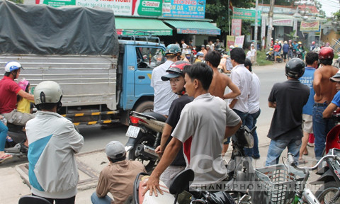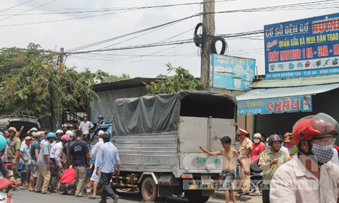 Tại hiện trường, nạn nhân tử vong dưới bánh xe tải, chiếc xe máy hiệu Future Neo bị móp méo, vỡ vụn nằm giữa đường. Sau khi gây tai nạn tài xế xe container và xe tải đã đến công an phường Tân Đông Hiệp để trình báo.