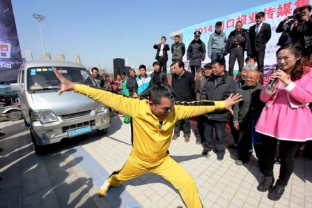 Màn trình diễn của Zhang được thực hiện tại một hội chợ trưng bày xe hơi ở Chu Khẩu, tỉnh Hà Nam, Trung Quốc.