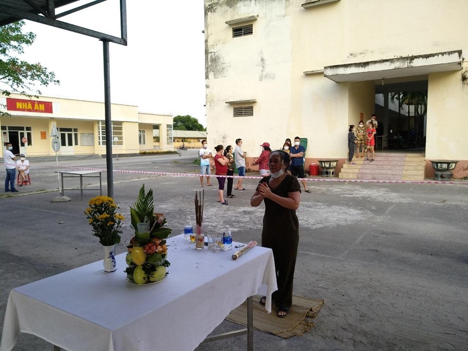 Những người dân trong khu cách ly cũng tới thắp hương, chia sẻ với mất mát của ông. Không về được, ông Sỹ nguyện vọng có nén nhang cây đèn để thắp hương cho cha. Ngay hôm đó, trung tâm đã chuẩn bị cho chú một bàn thờ vọng đầy đủ để chú tưởng nhớ về người cha đã ra đi.