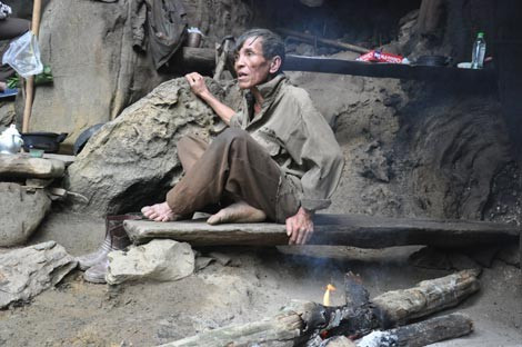 Nơi ấy là một hang đá khá rộng, sâu chừng 5 mét. Miệng hang quanh năm đen đúa vì lửa ông Toán đốt. Điều đặc biệt là ông Toán chưa từng nằm giường. Hai tấm gỗ nhỏ chỉ đúng vừa khít lưng người đen bóng mồ hôi được ông nằm trong suốt hơn ba mươi năm. Tấm gỗ được ông khéo léo đặt ngang bếp lửa. Ông bảo như vậy sẽ tránh được muỗi, côn trùng, đặc biệt là thú dữ. Phải đối mặt với cái đói, cái rét rồi chống chọi với thú rừng, bệnh tật và nỗi cô đơn, có lẽ để tồn tại trong rừng chừng ấy thời gian là một kỳ tích.