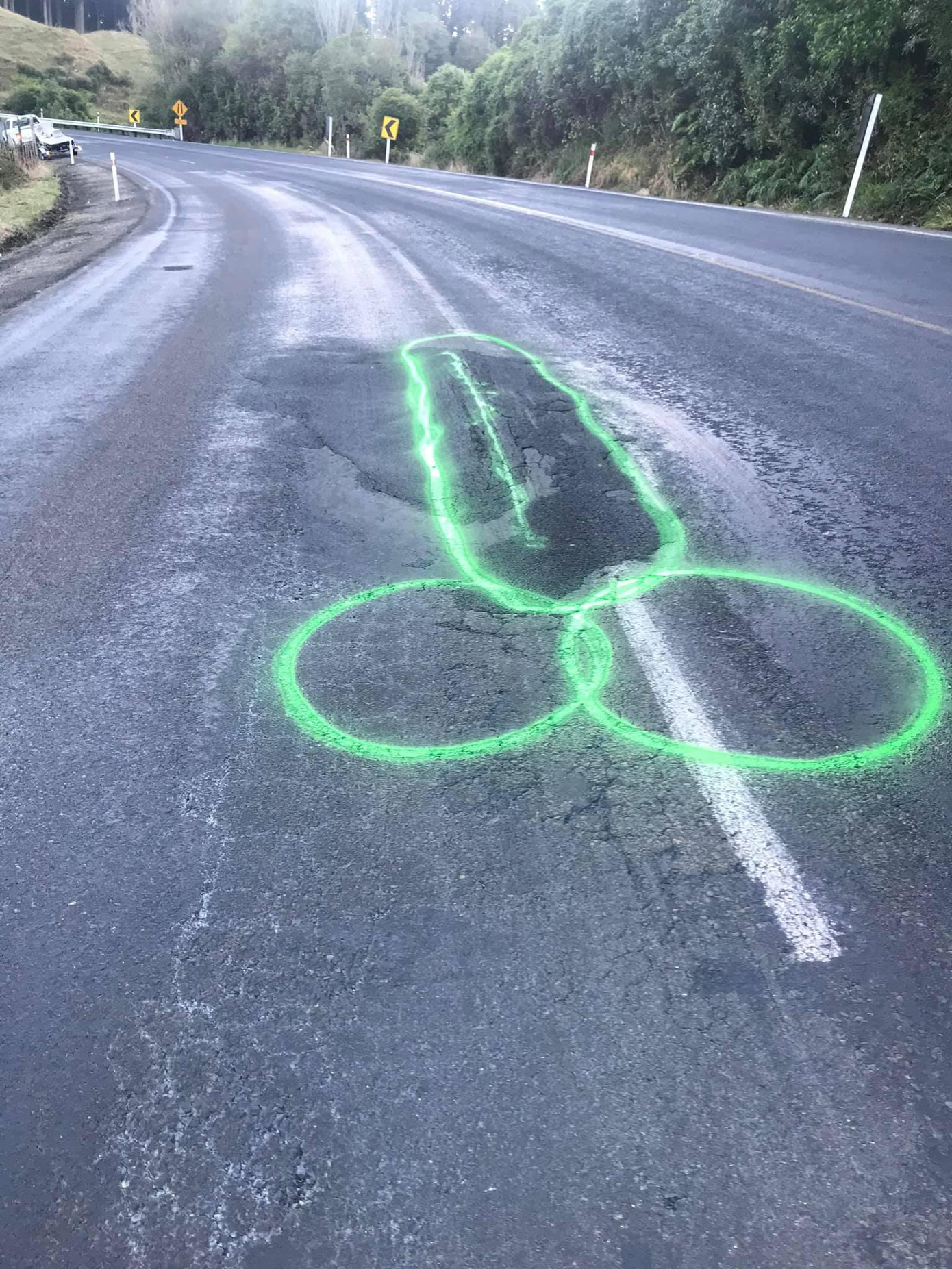 | Hình dương vật mà Upson vẽ quanh các ổ gà trên đường |