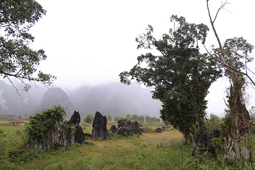 Áo mưa trùm kín người, đầu đội mũ cối, chân đi ủng, ông Đinh Xuân An (49 tuổi, trú xã Tân Hóa, huyện Minh Hóa, Quảng Bình) cho hay ông vừa đi cắt cỏ phía bên trong trường quay của phim Kong: Skull Island. Từ hai hôm nay, bộ phim bom tấn về nhân vật khỉ đột khổng lồ được khởi quay ở phim trường thứ hai tại khu vực Hang Chuột, xã Tân Hóa (huyện Minh Hóa,Quảng Bình).