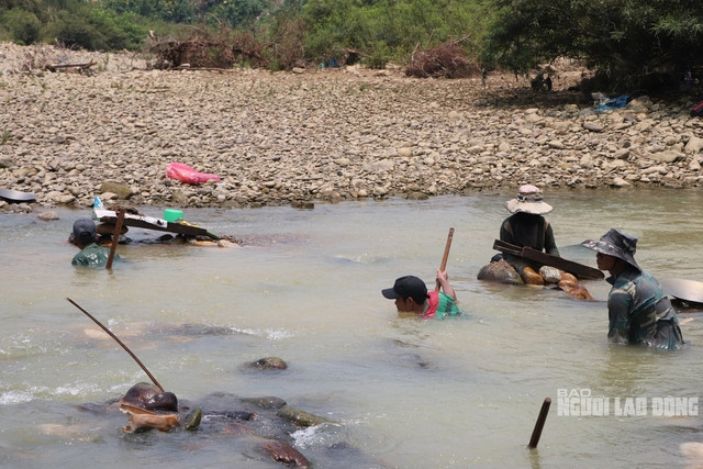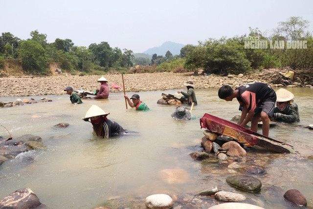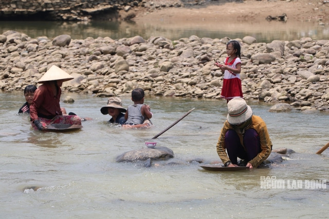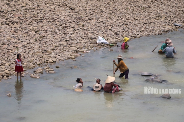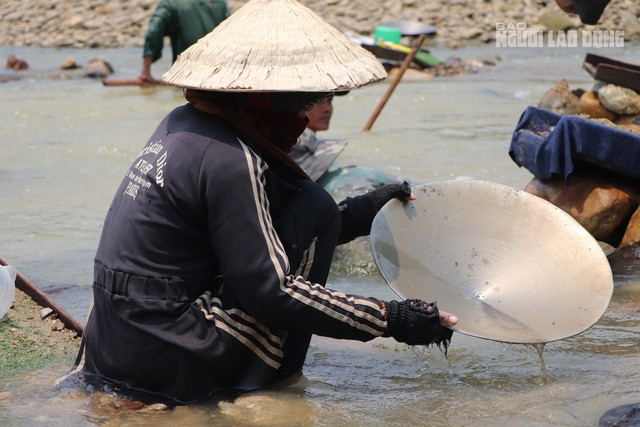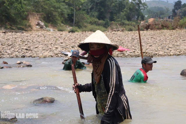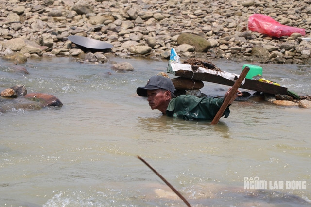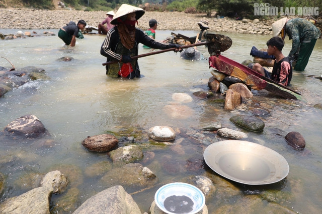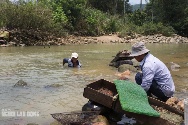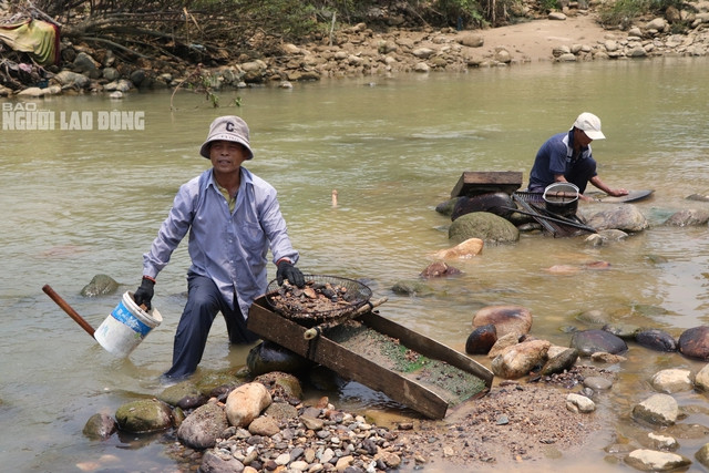 Dầm mình dưới nước hàng giờ đồng hồ trong điều kiện nắng nóng gay gắt, nếu may mắn, người dân vùng cao Quảng Nam có thể kiếm được vài trăm ngàn đồng/ngày.