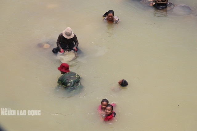 Nhiều trẻ em theo ba mẹ xuống sông chơi trong quá trình ba mẹ đãi vàng