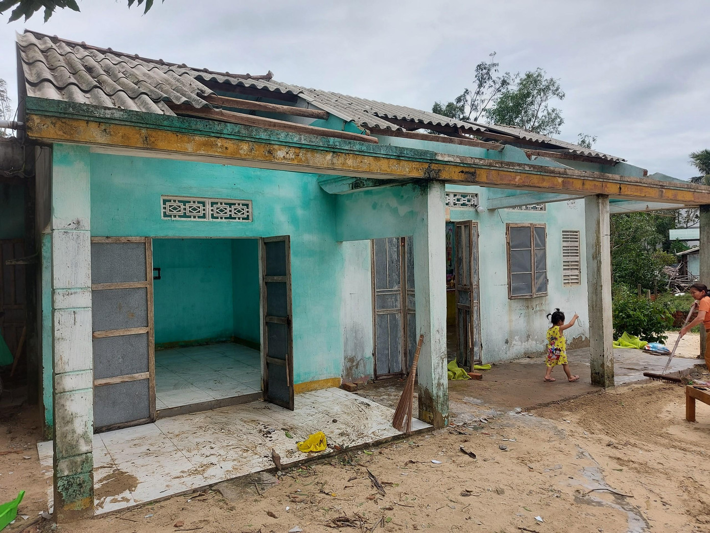 | Ngôi nhà tan hoang sau bão. |