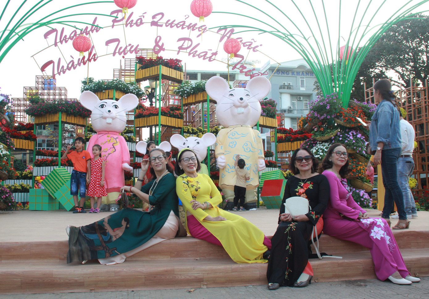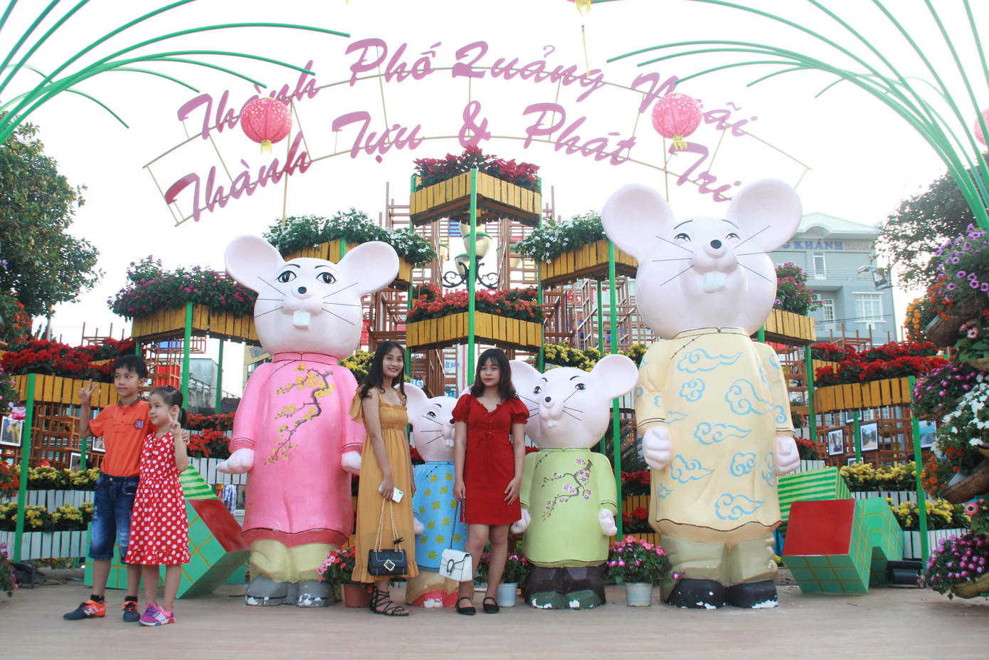 Các tiểu cảnh được thiết kế hiện đại, sinh động cùng sự xuất hiện của các linh vật càng điểm tô cho bức tranh xuân thêm sinh động giữa lòng thành phố