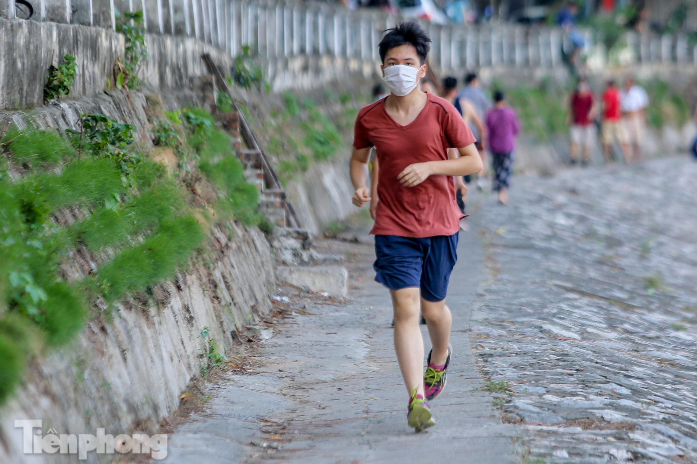 | Dù đang trong thời gian dịch bệnh COVID-19 diễn biến phức tạp, tuy nhiên hình ảnh người dân tập thể dục không khác gì ngày thường. |