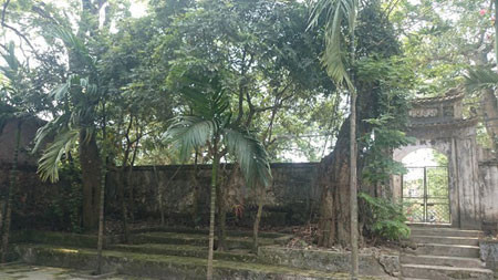 Một cây sưa khác trồng bên ngoài khuôn viên chùa Phụ Chính, được người dân dựng hàng rào sắt xung quanh.