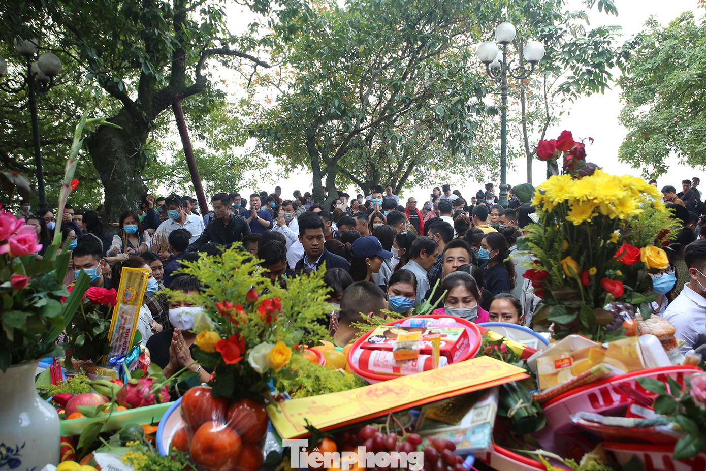 Ngay khi Phủ Tây Hồ mở cửa đã có rất đông người dân đứng chờ dâng lễ. Càng về trưa, lượng người đổ về Phủ càng đông hơn.