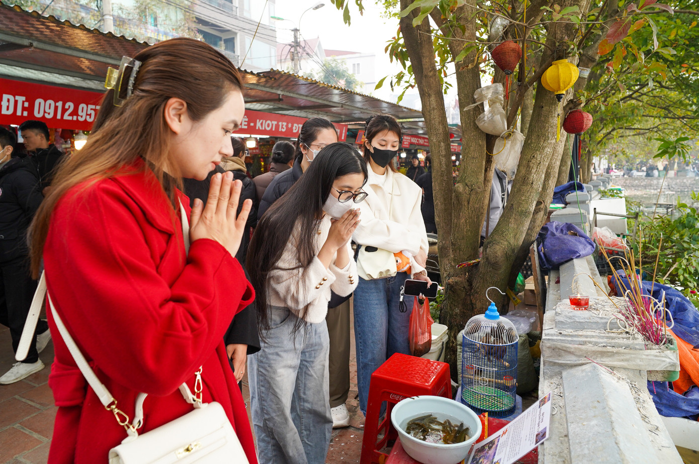 | Sau khi làm lễ xong, một số người sẽ thực hiện nghi lễ phóng sinh các loài cá, chim, rùa, ốc xuống Hồ Tây. |