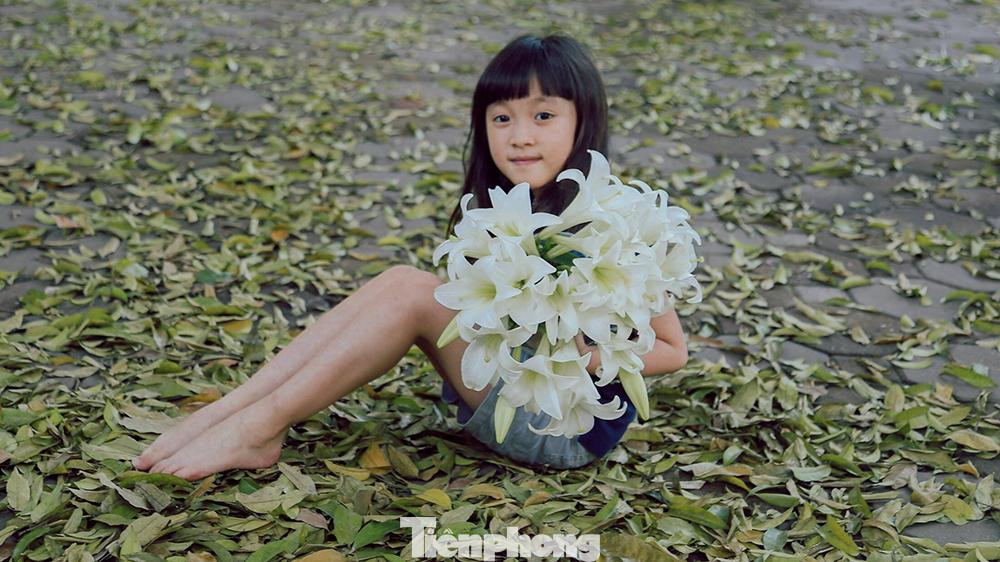 | Tiểu thương tranh thủ bán và cho thuê hoa loa kèn cùng với các loại khác để chụp ảnh. |