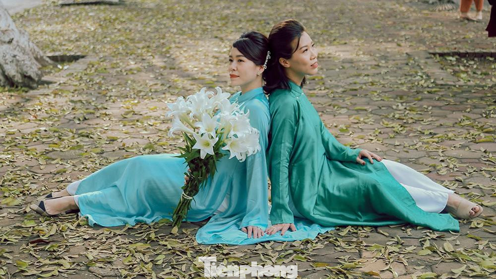 Ghi nhận của PV, ngay cả ngày thường, dọc phố Phan Đình Phùng, Hoàng Diệu... khá đông người đân dến đây chụp ảnh, có người đi lẻ với chiếc điện thoại, có người lả lướt với áo dài với ekip hùng hậu. "Bọn em chưa có ảnh lá vàng nào ở đây cả, sáng nay hai đứa không phải đi học nên rủ nhau ra đây tự chụp cho nhau", Hà My (21 tuổi, Tây Hồ, Hà Nội) chia sẻ.