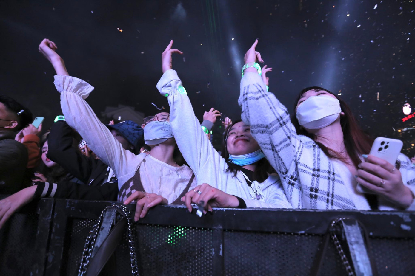 | Bạn Tâm (Thanh Xuân, Hà Nội) và nhóm bạn cho biết: Thật vui và thoải mái khi được quẩy hết mình tại đêm nhạc chào mừng năm mới mà không còn phải lo đại dịch COVID-19 |