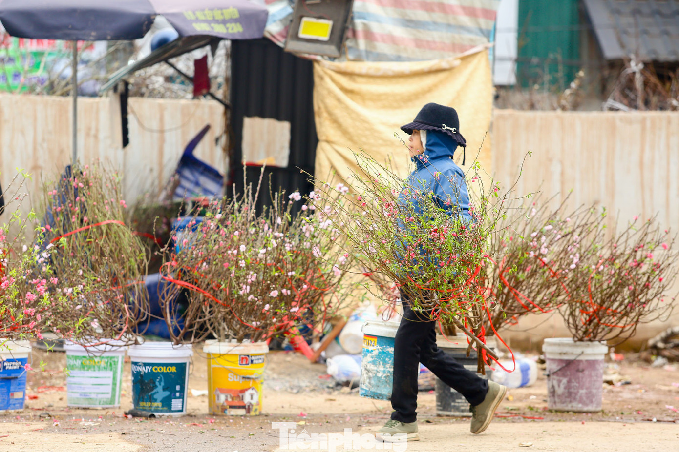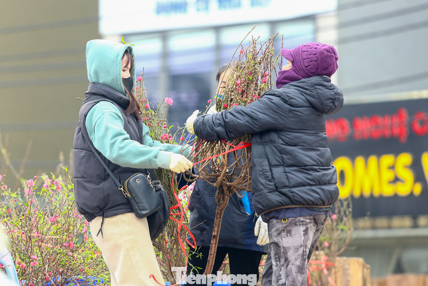 | Ghi nhận của PV, hiện những khu chợ hoa tại Hà Nội như Lạc Long Quân, Quảng Bá đều tấp nập người dân đến mua đào dăm, đào cành trong ngày Rằm tháng Chạp. |