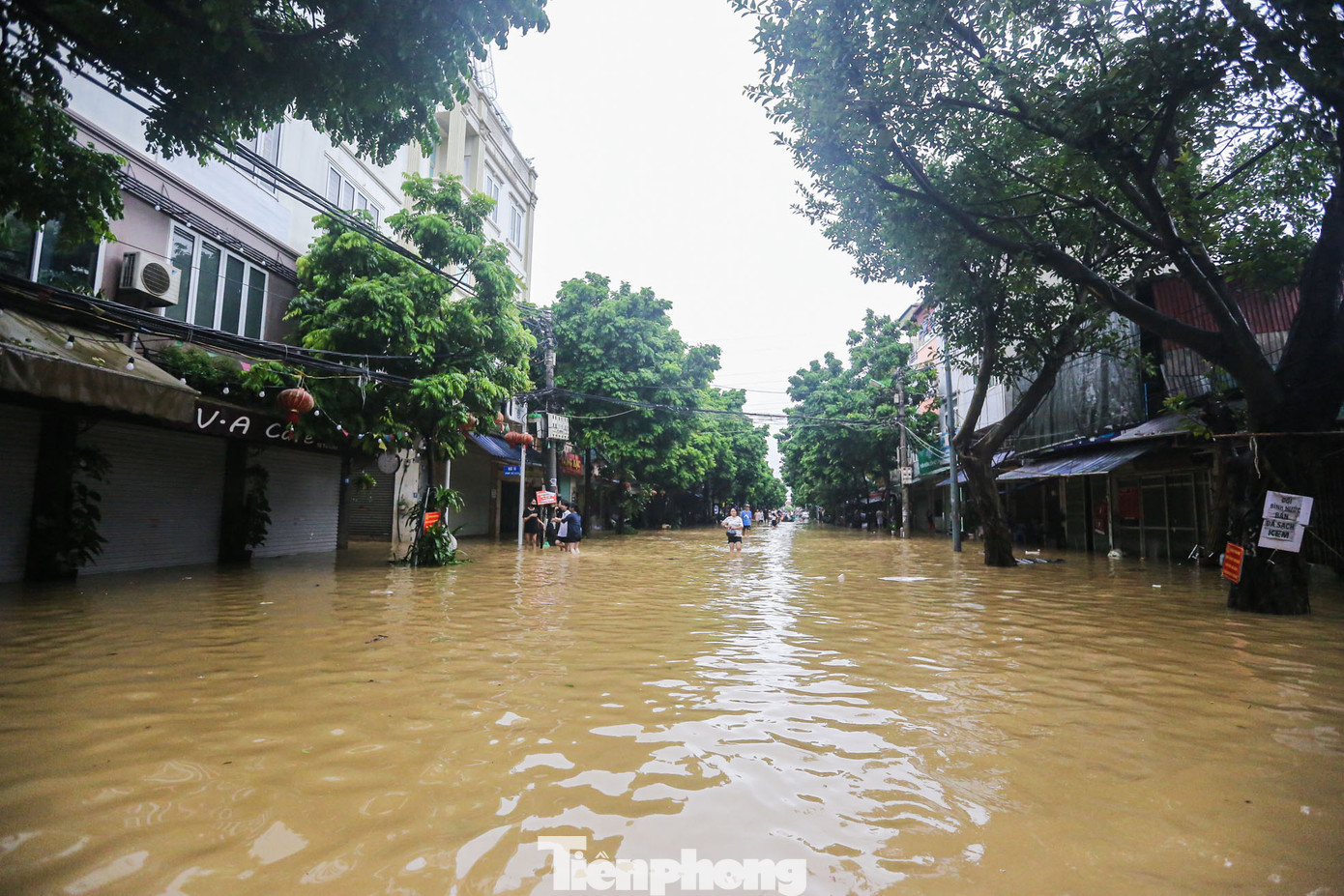 | Ghi nhận của PV, chiều 11/9, nước sông Hồng dâng cao ngập vào khu dân cư trên phố Tứ Liên (phường Tứ Liên, quận Tây Hồ, Hà Nội) khiến hàng trăm hộ dân ở khu vực trên hối hả đi sơ tán. |