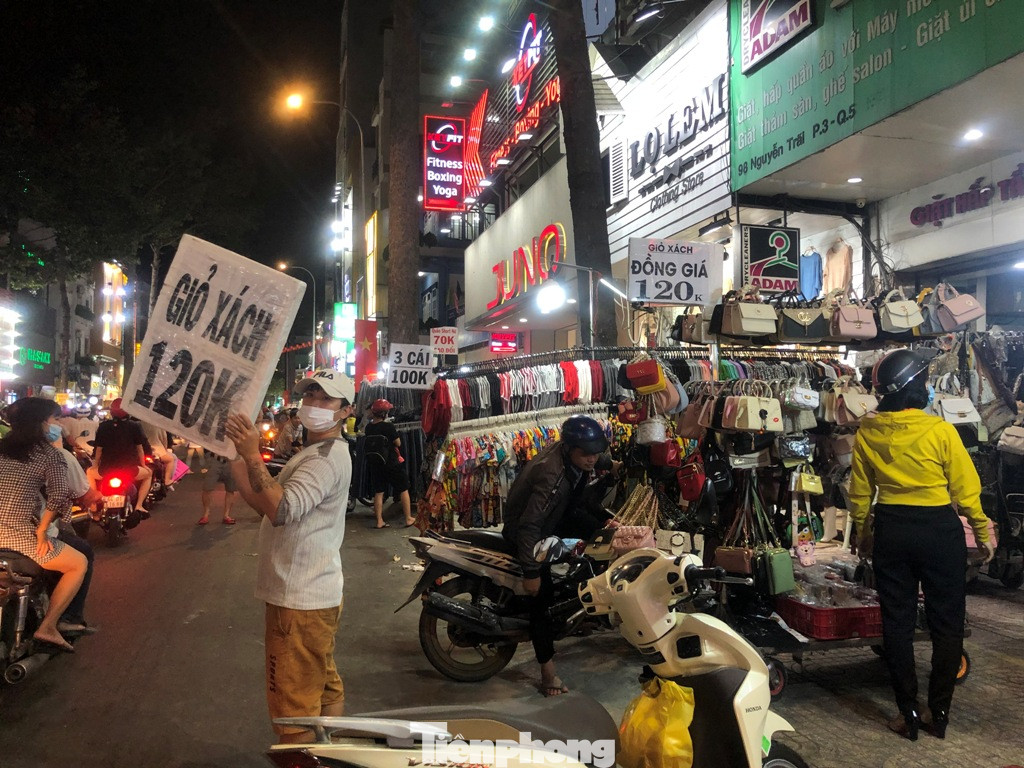 Từ 19h trở đi, trên nhiều tuyến đường thời trang như Nguyễn Trãi (Q.5), Cách Mạng Tháng Tám (Q.10, Q.Tân Bình), Lê Văn Sỹ (Q.Phú Nhuận)... các mặt hàng thời trang bày bán hai bên đường luôn tấp nập người mua, kẻ bán.