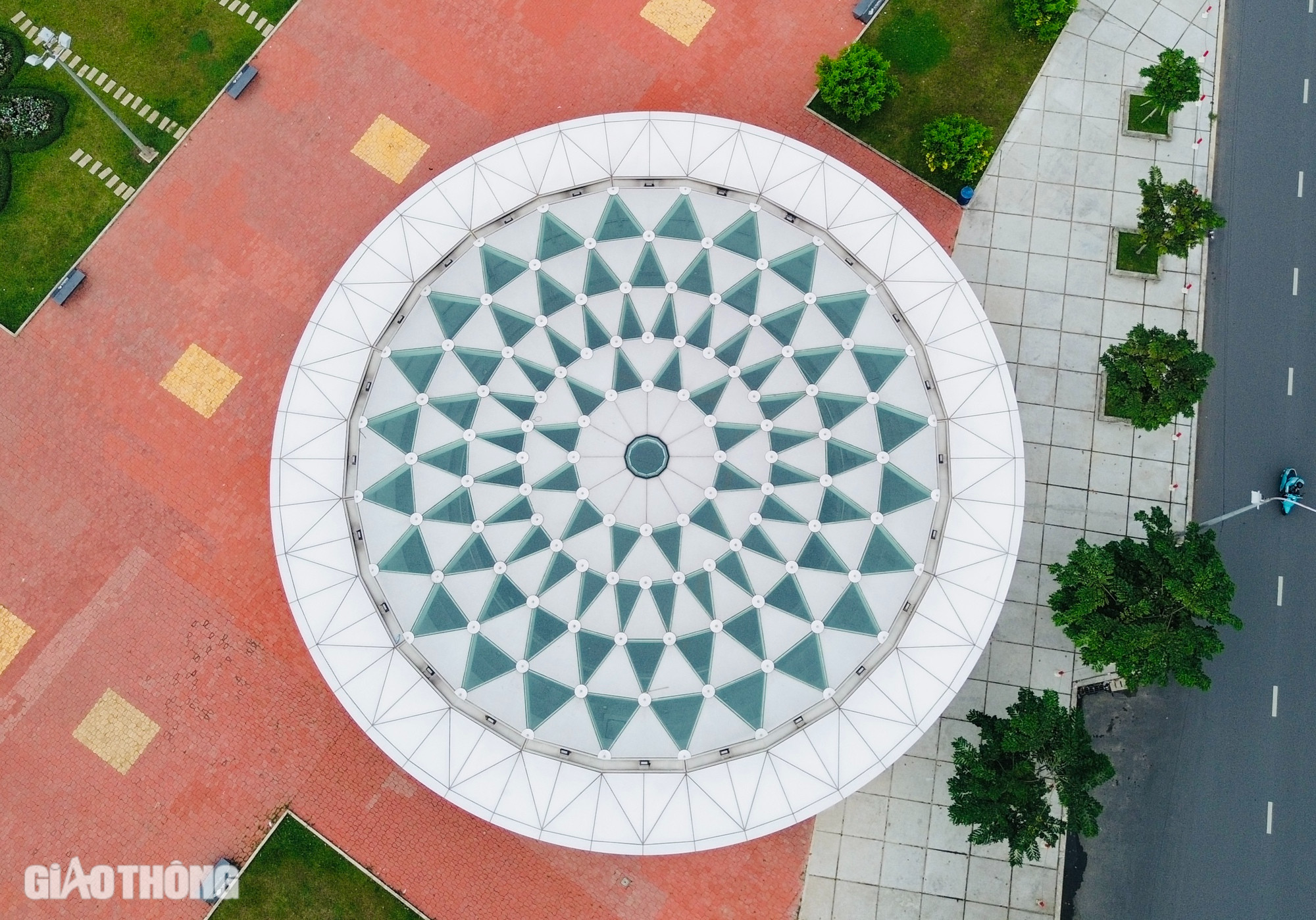 | Điểm nhấn của ga Bến Thành chính là giếng trời cao 6m với đường kính 21,6m, thiết kế hình hoa sen tinh tế, đẹp mắt. Đây là nơi ai cũng ghé lại chụp hình lưu niệm trước khi bước lên tàu metro. |