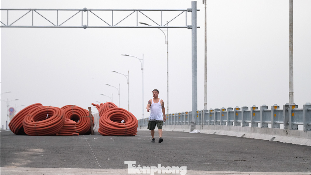 Anh Thanh nhà ở phố Minh Khai đã đạp xe lên cầu tập thể dục vào buổi sáng trong vòng khoảng một tuần nay. Anh này chia sẻ: "Kể từ khi đơn vị thi công tháo rào chắn, tôi tranh thủ đạp xe lên đây tập thể dục vào buổi sáng sớm. Được đạp xe trên mặt cầu rộng thênh thang cho cảm giác thật thú vị và đặc biệt bởi sau này cầu đưa vào sử dụng sẽ không bao giờ được đạp xe vào làn đường ô tô như thế này".
