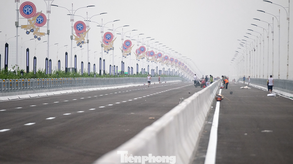 TPO - Sau gần 3 năm thi công, cầu Vĩnh Tuy 2 sắp được khánh thành trong thời gian tới. Người dân Thủ đô tranh thủ lên cầu vừa tập thể dục vừa ngắm cầu vào buổi sáng sớm.