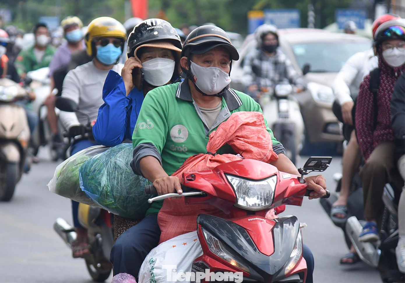 | Một gia đình lỉnh kỉnh đồ đạc trở về Thủ đô |