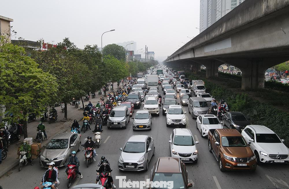 | Lượng phương tiện ùn tắc kéo dài từ trạm thu phí Pháp Vân-Cầu Giẽ đến đường vành đai 3 trên cao |