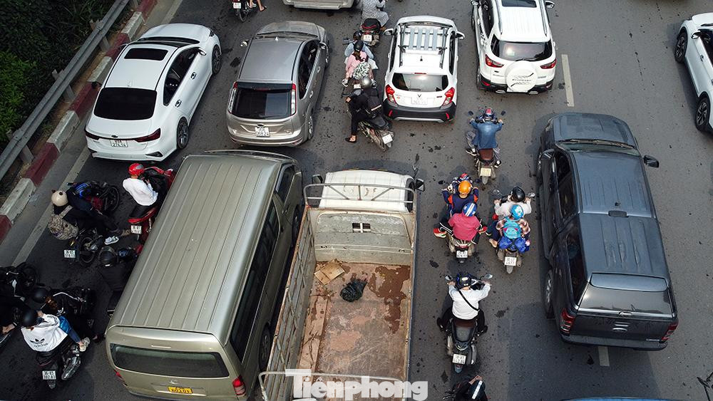 | Tuyến đường vành đai 3 tắc cứng cả trên cao và làn đường phía dưới. |