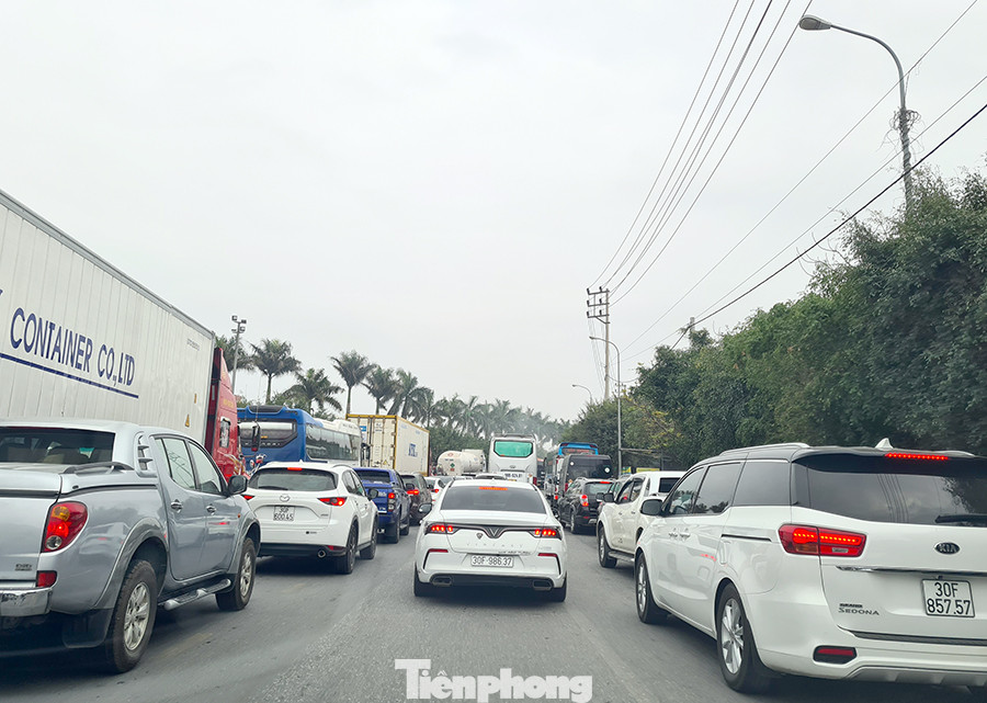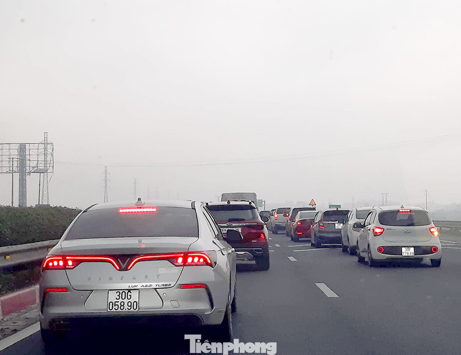 Đoạn cao tốc Cầu Giẽ - Pháp Vân phương tiện nối hàng dài di chuyển vào Hà Nội. Ảnh: Dương Hưng.