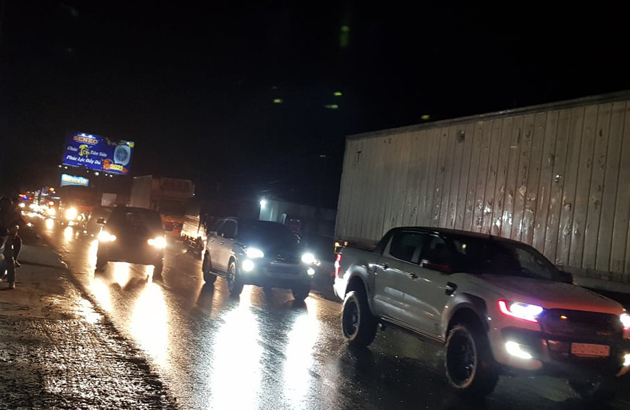 Kẹt xe khoảng 10km từ trạm thu phí BOT Cai Lậy (Quốc lộ 1) đến vòng xoay huyện Cái Bè (Tiền Giang).