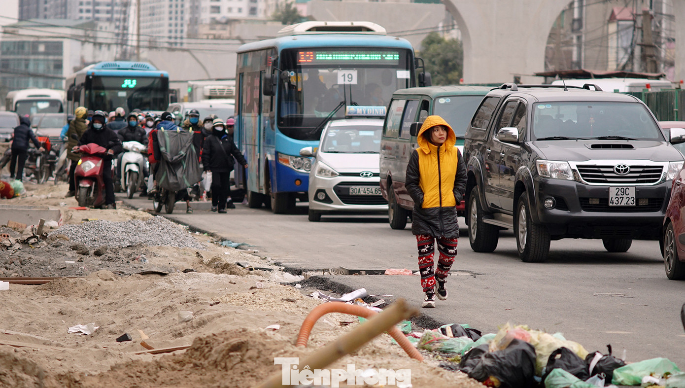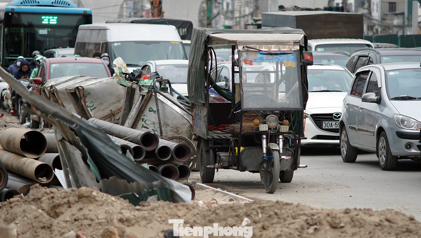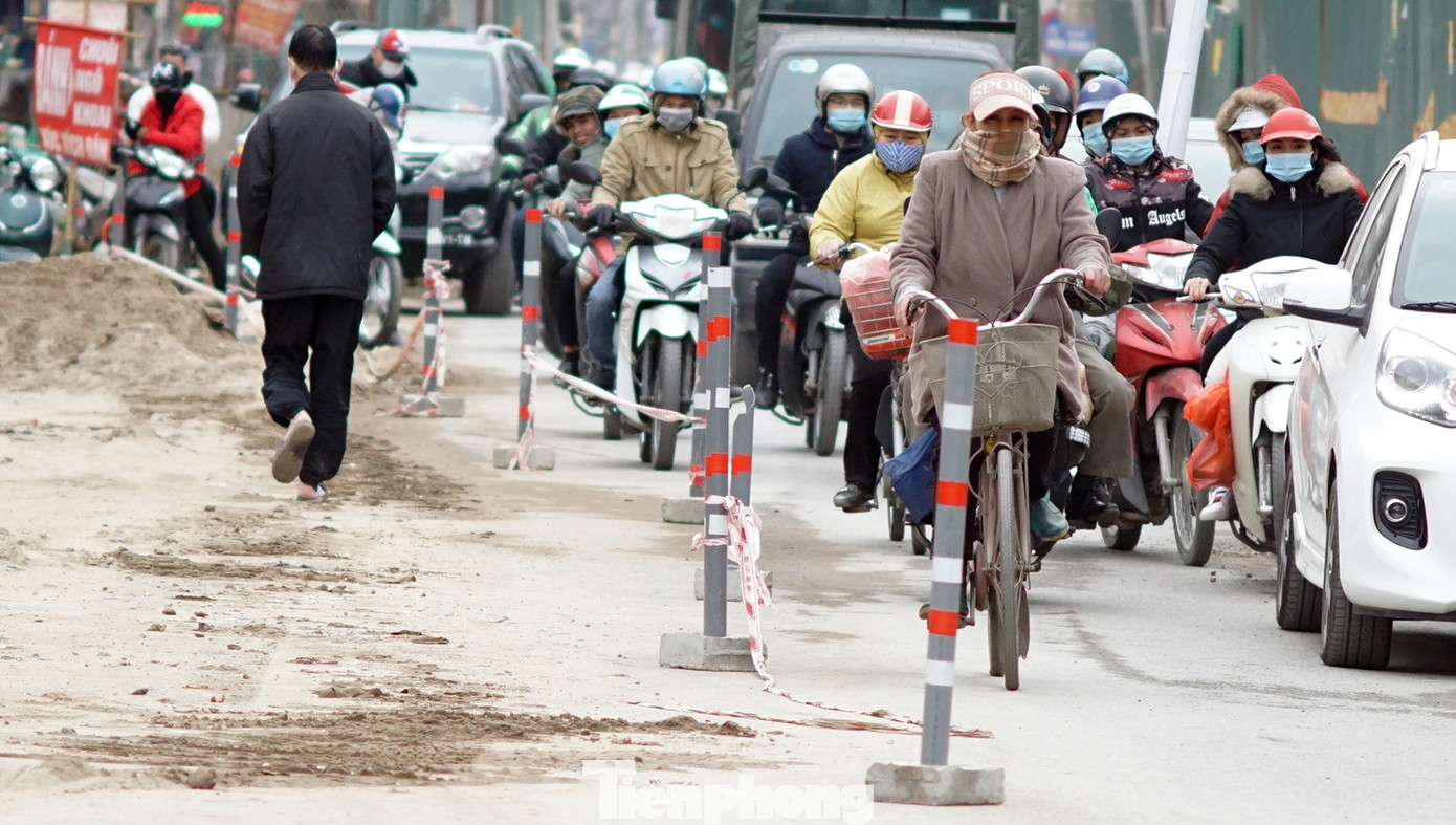 Ngoài việc xảy ra ùn ứ, nhiều người đi đường phải đối mặt với 'ma trận' rào chắn, đào đường, khói bụi.