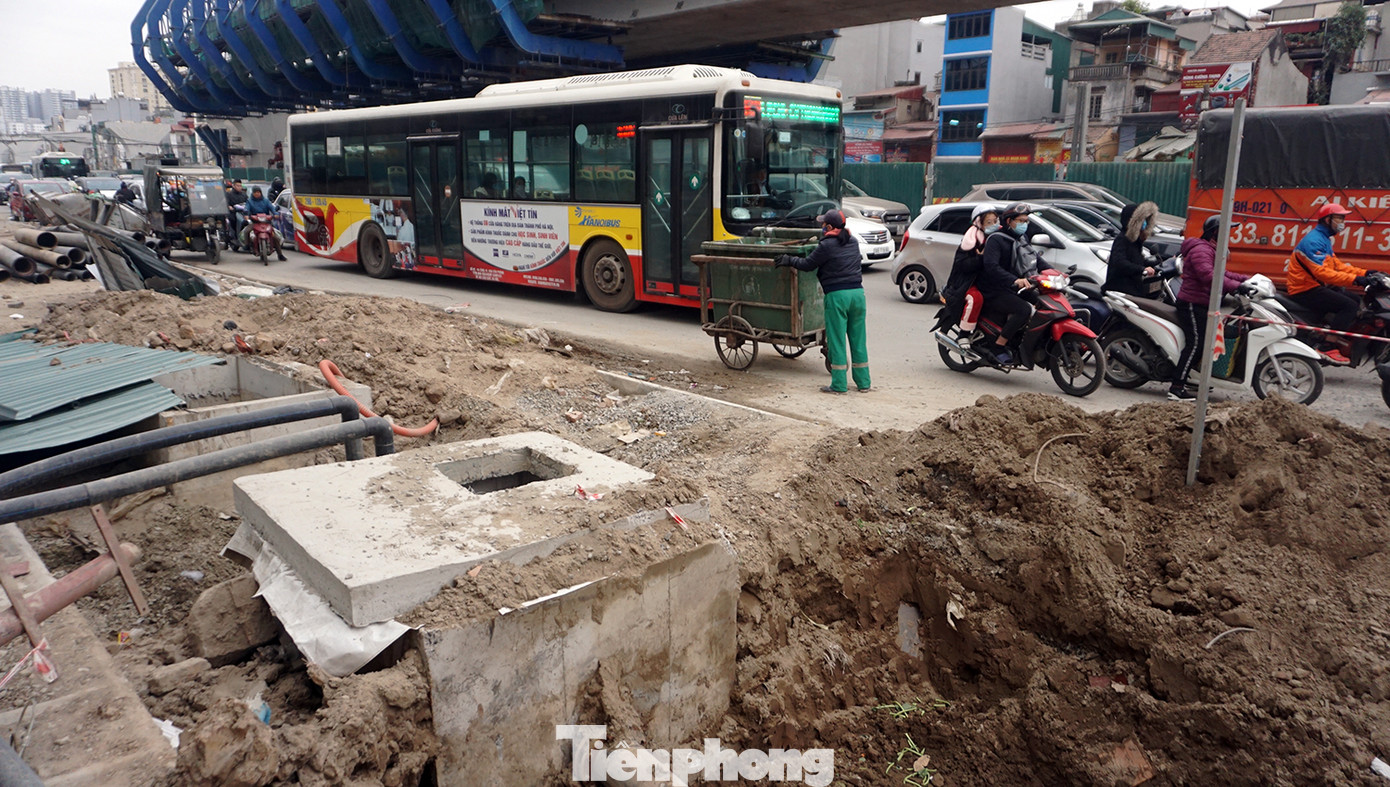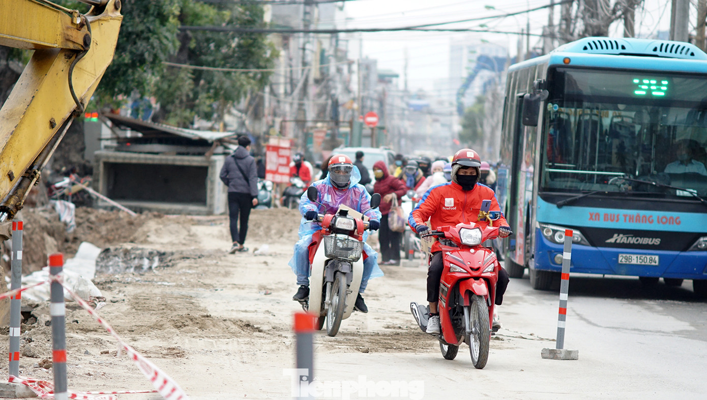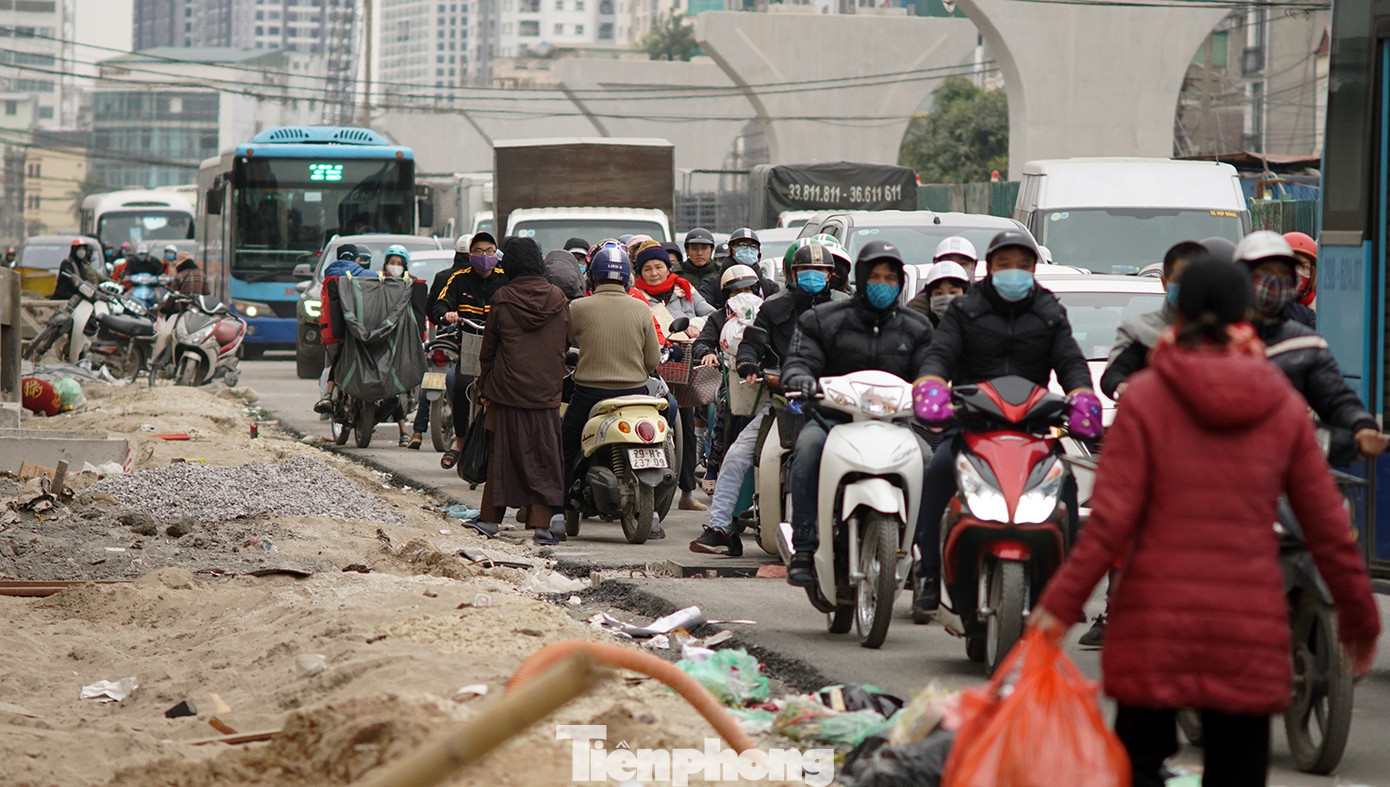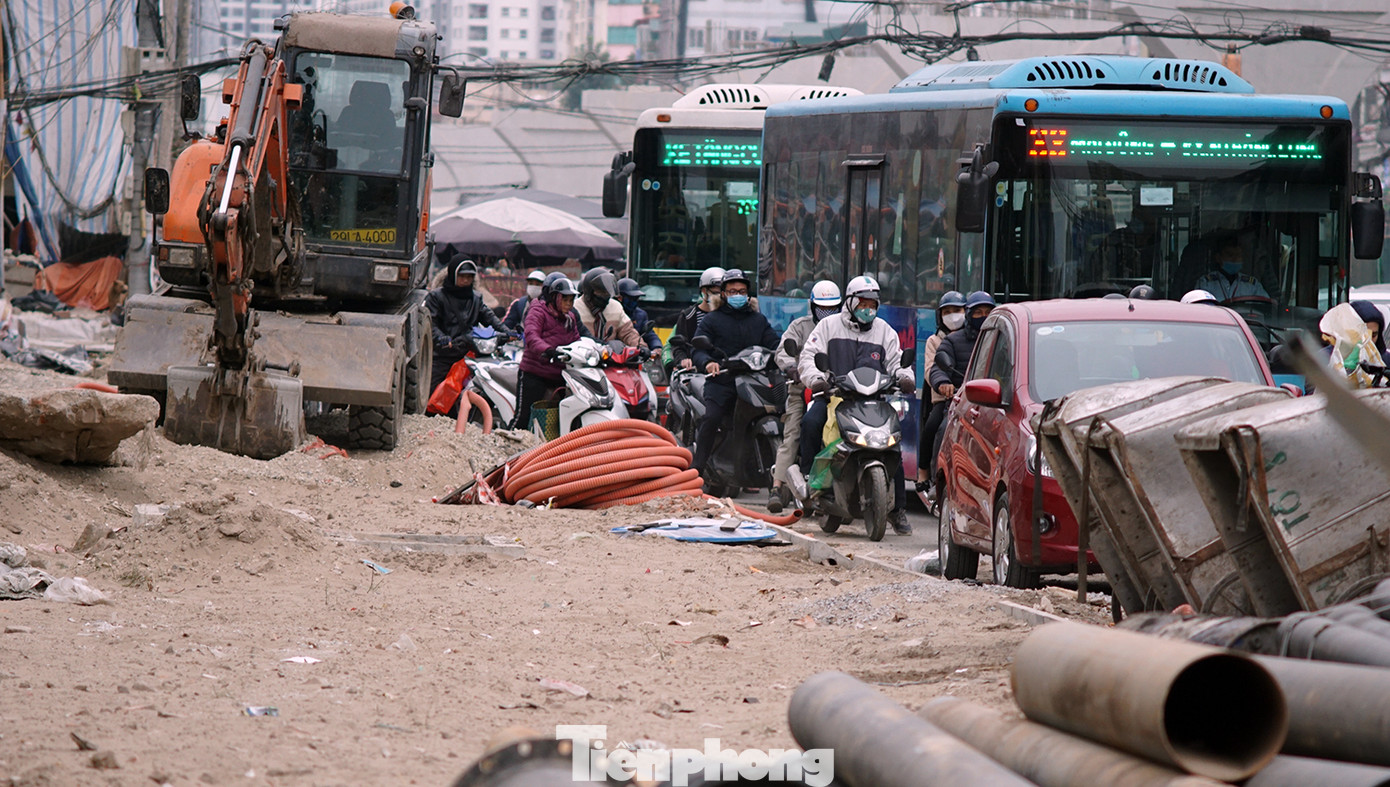 Ngoài việc xảy ra ùn ứ, nhiều người đi đường phải đối mặt với 'ma trận' rào chắn, đào đường, khói bụi.
